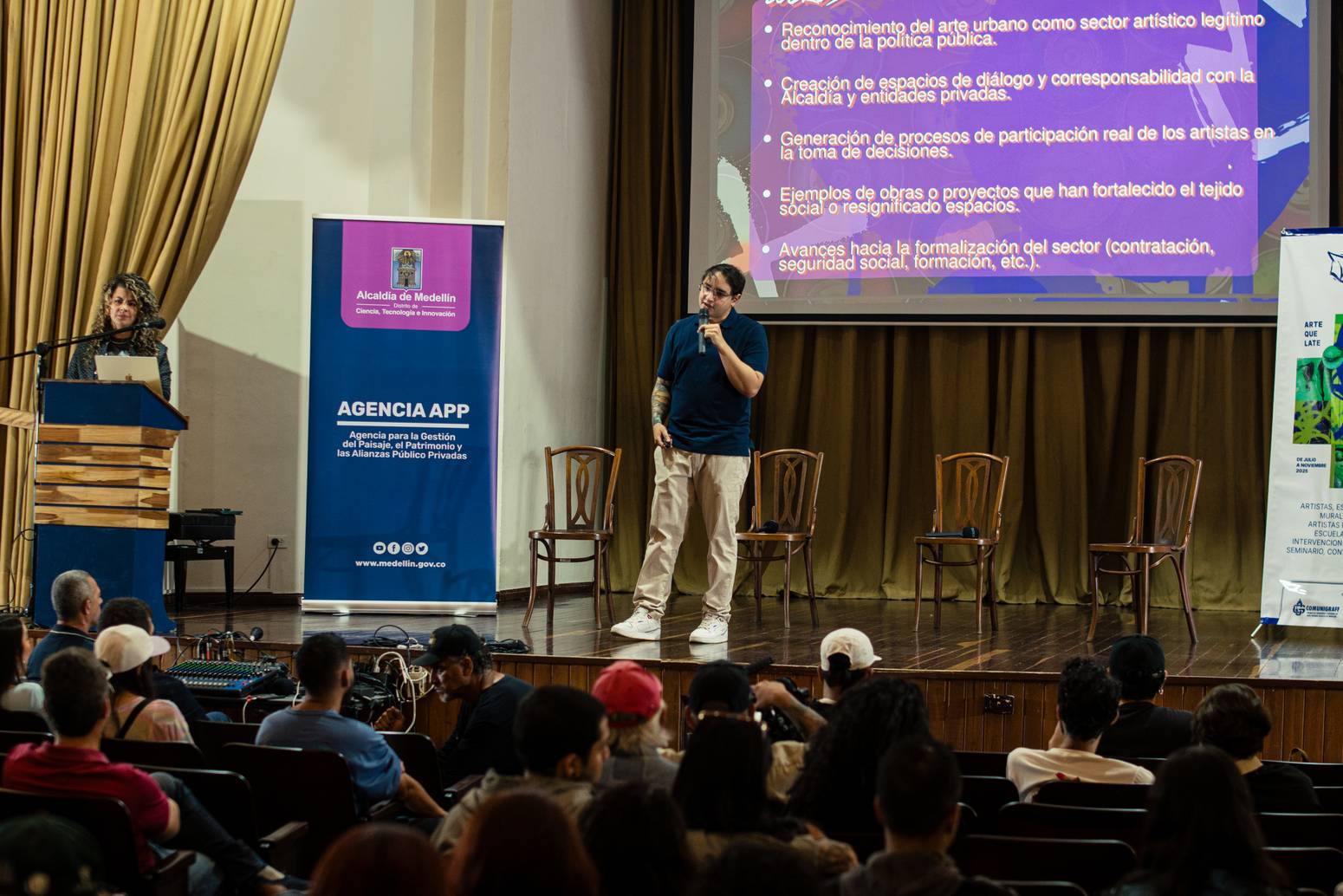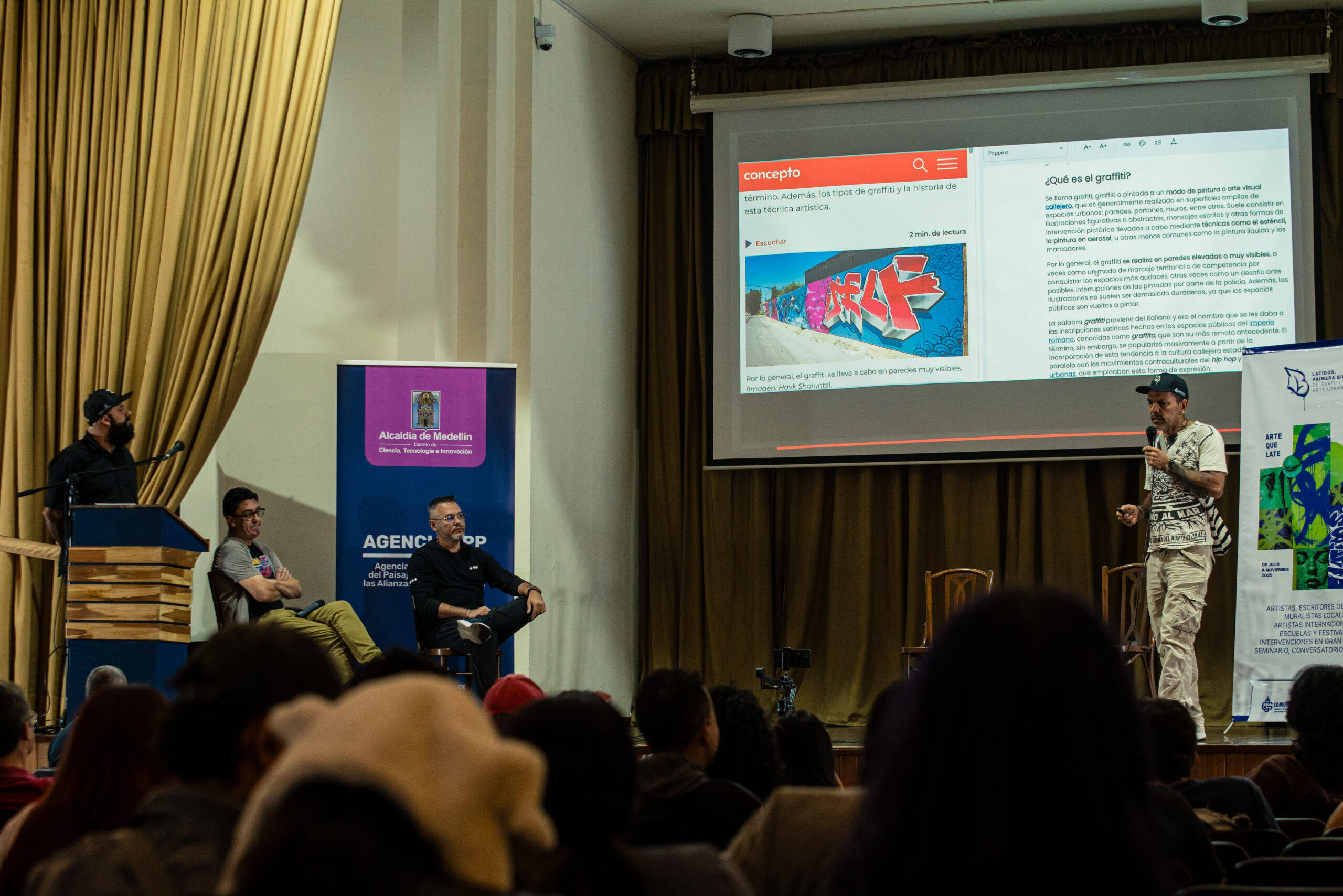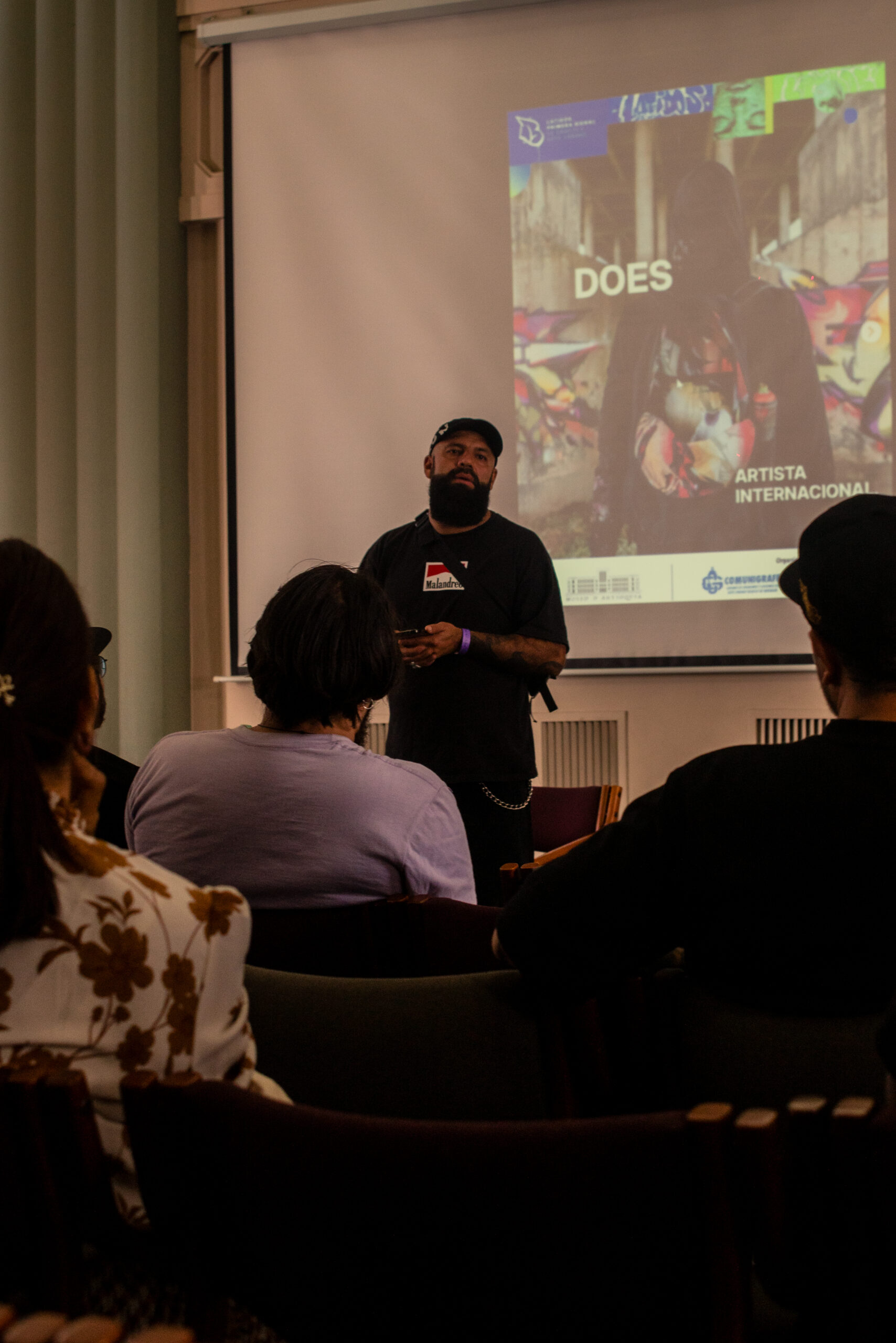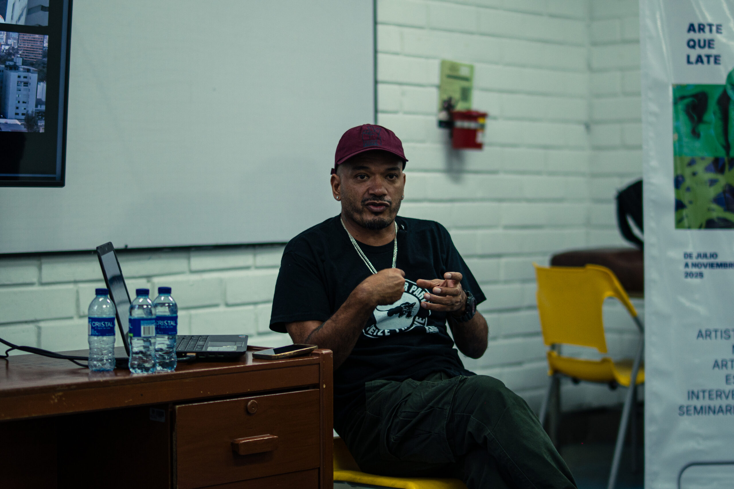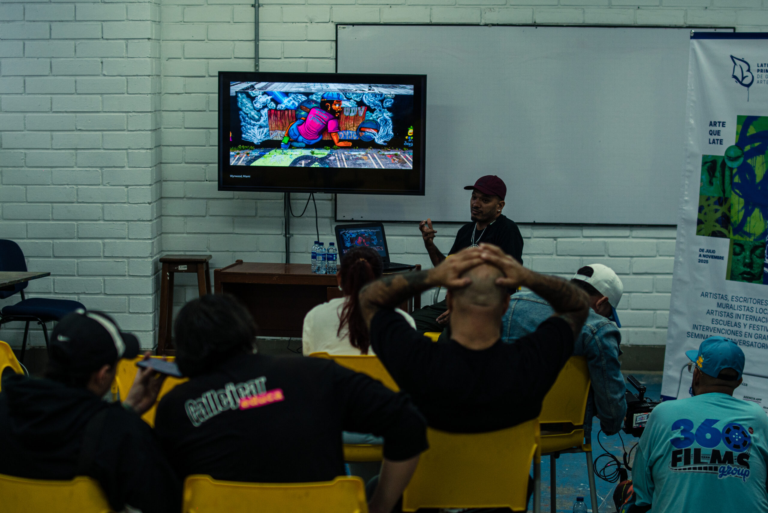 El artista visual y muralista peruano Entes compartió su visión del graffiti como resistencia, identidad y memoria, abordando las influencias urbanas, sociales y afroperuanas que atraviesan su obra. En este conversatorio habló sobre su proceso creativo y la manera en que su trabajo dialoga con comunidades marginadas y contextos latinoamericanos. El encuentro se realizó el 26 de septiembre de 2025 en la Fundación Universitaria Bellas Artes, sede Ayacucho, Pasaje Cervantes, salón 201.