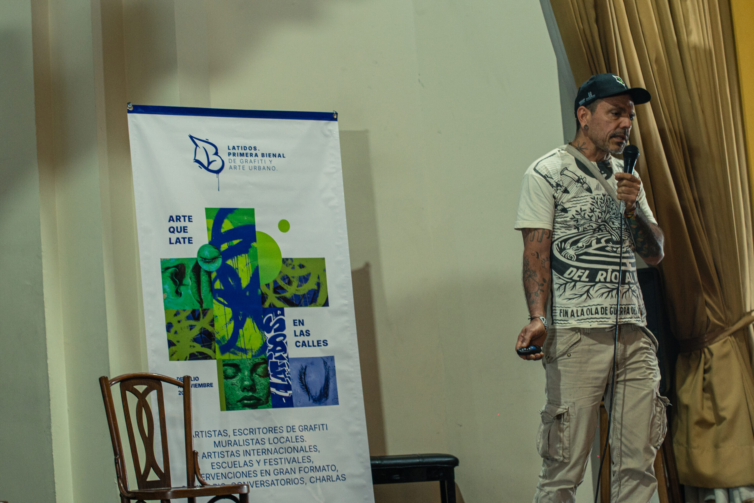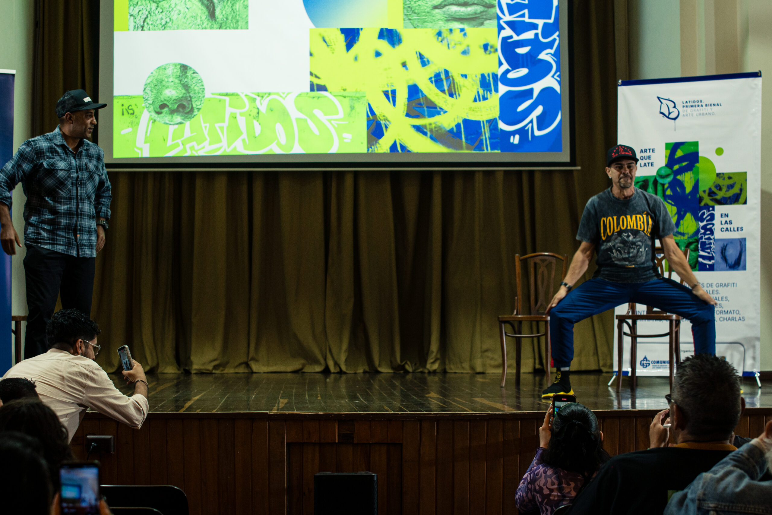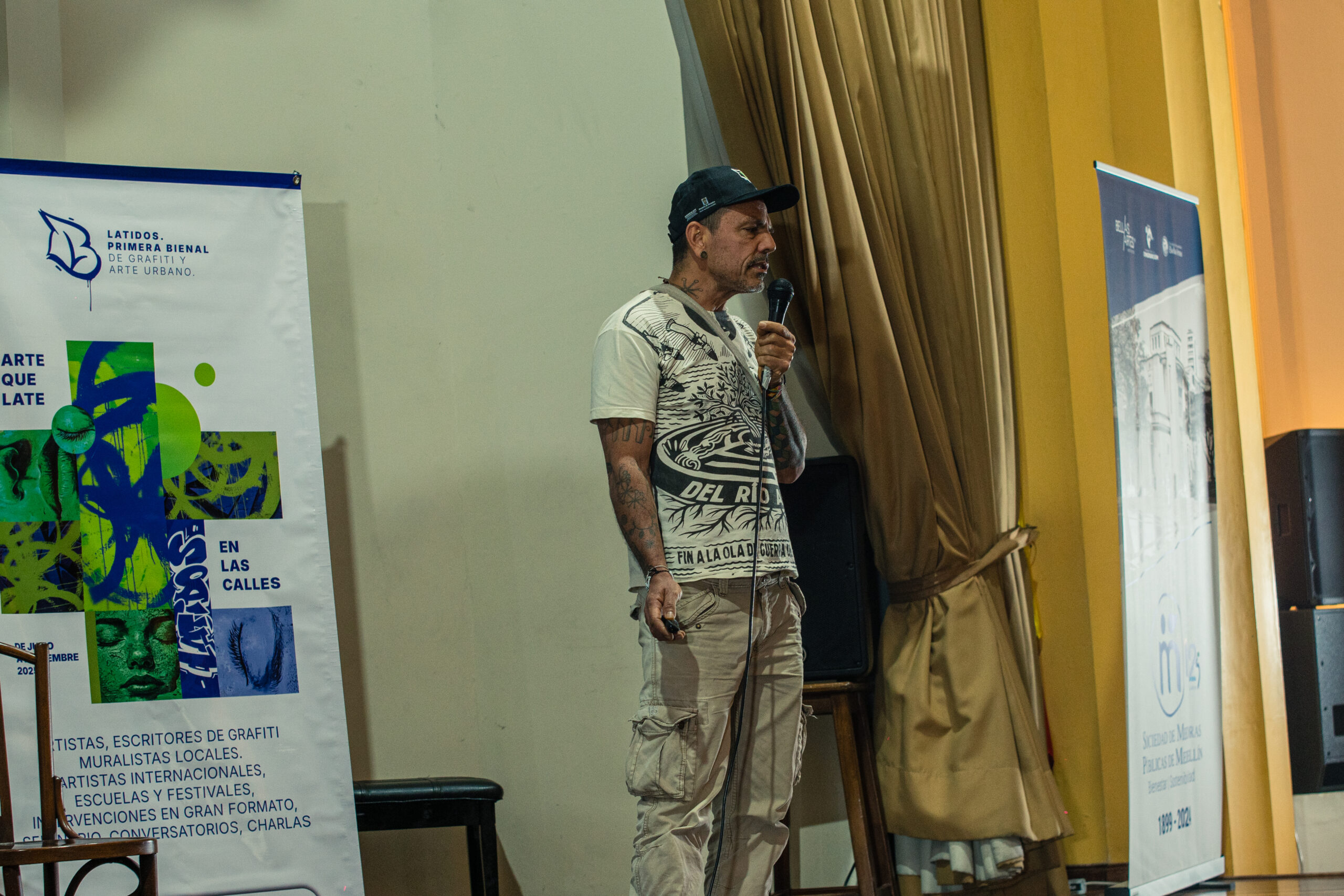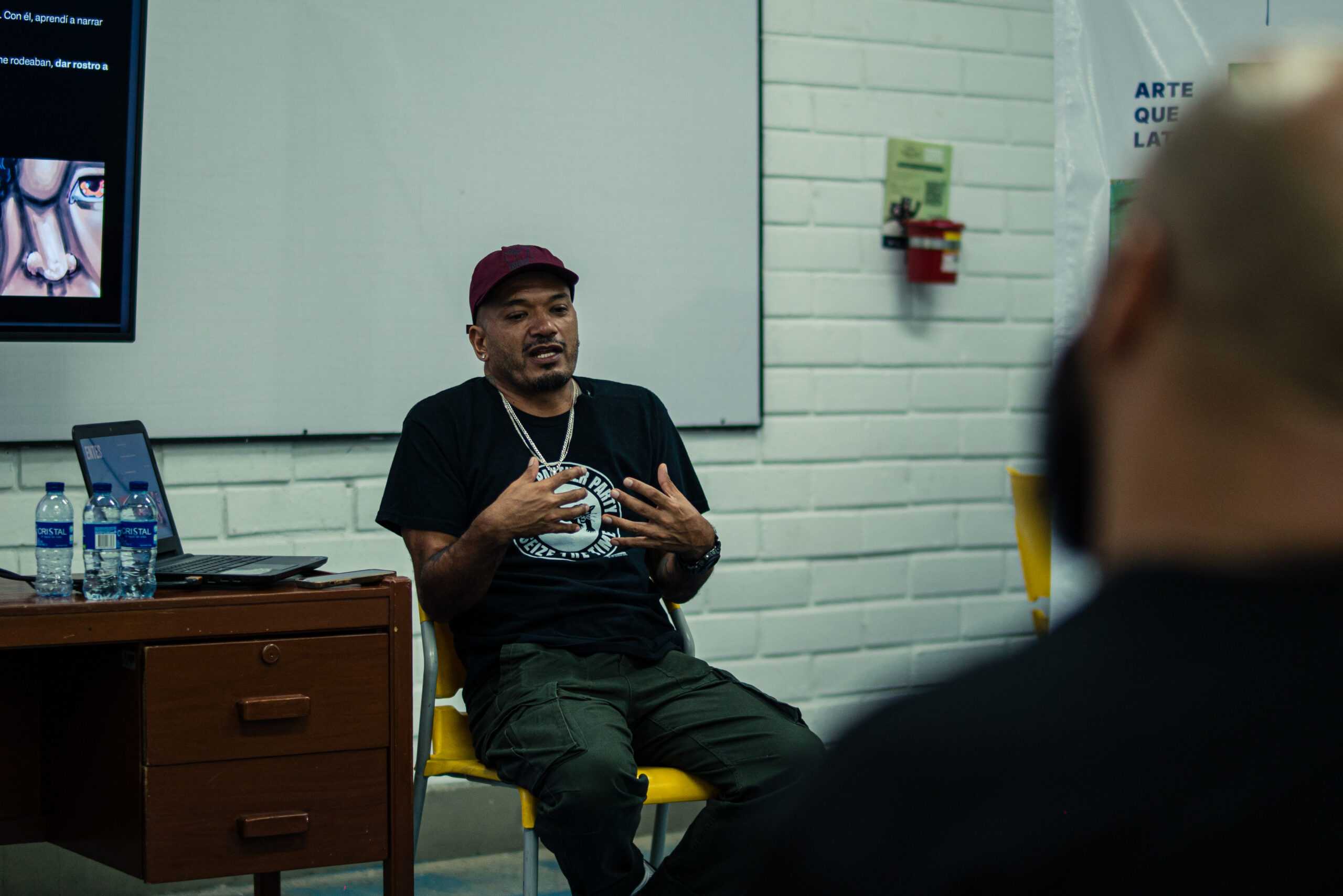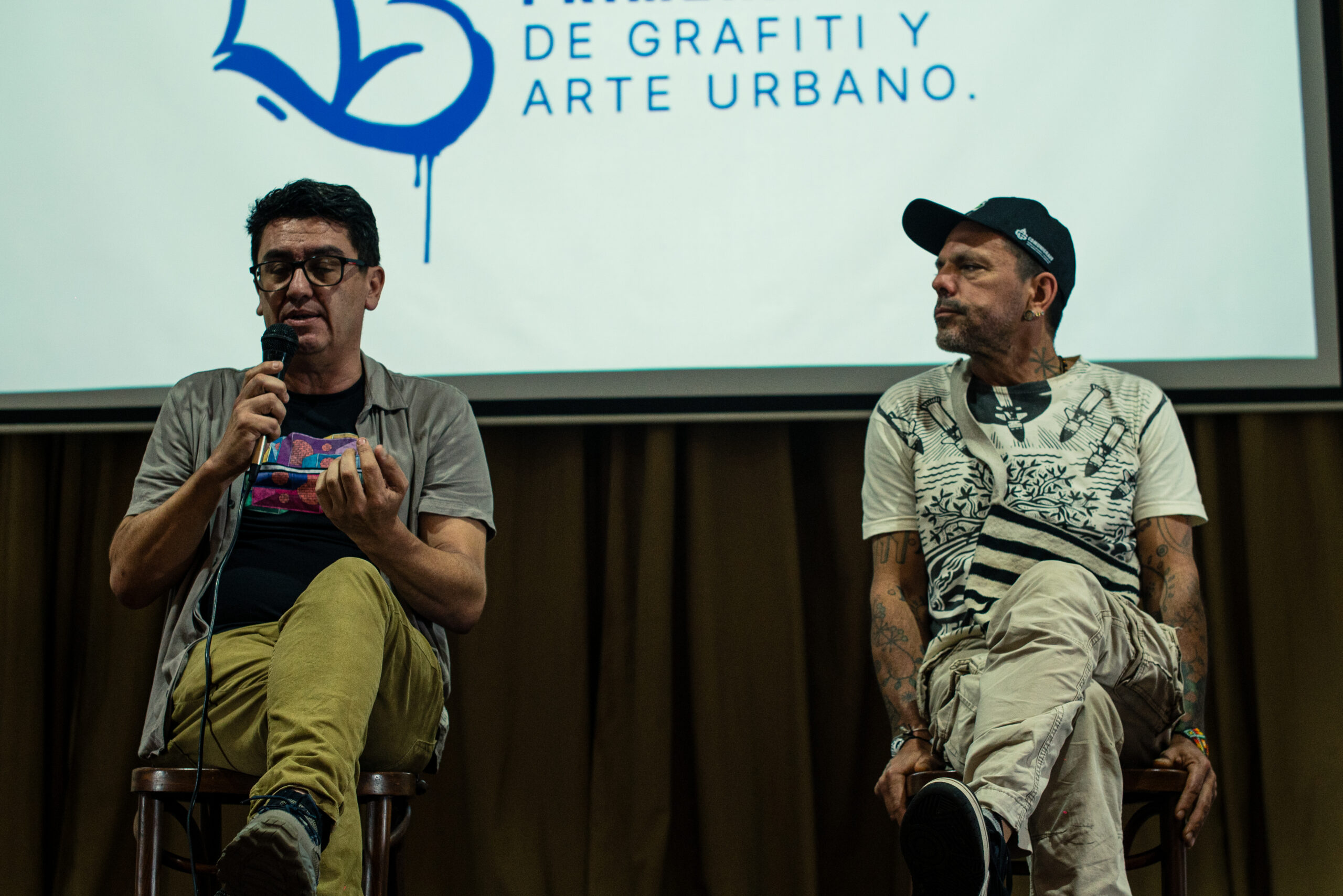 El artista visual y muralista peruano Entes compartió su visión del graffiti como resistencia, identidad y memoria, abordando las influencias urbanas, sociales y afroperuanas que atraviesan su obra. En este conversatorio habló sobre su proceso creativo y la manera en que su trabajo dialoga con comunidades marginadas y contextos latinoamericanos. El encuentro se realizó el 26 de septiembre de 2025 en la Fundación Universitaria Bellas Artes, sede Ayacucho, Pasaje Cervantes, salón 201.