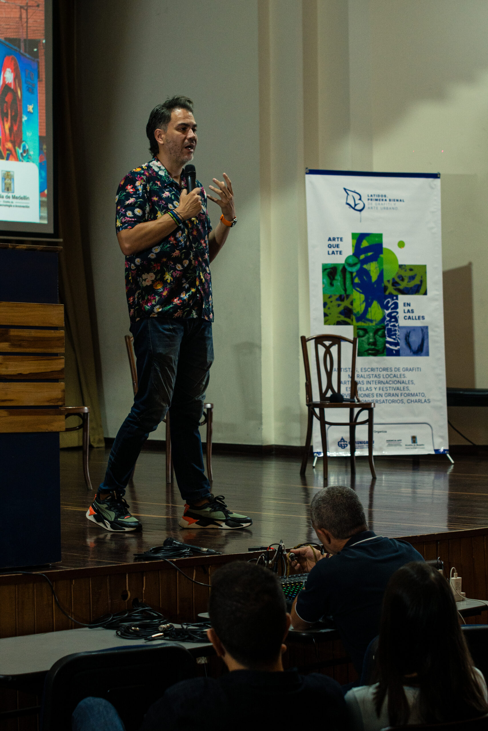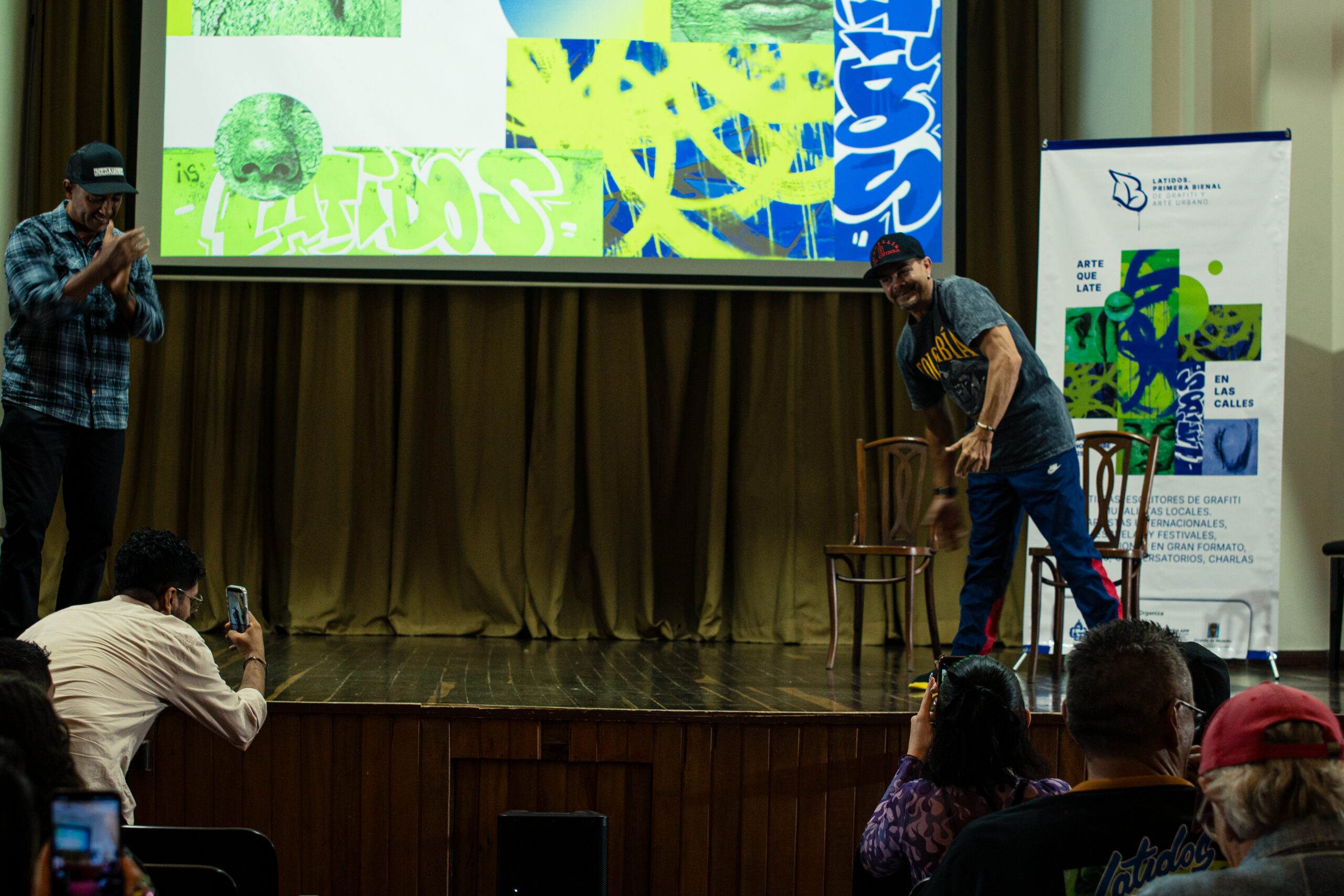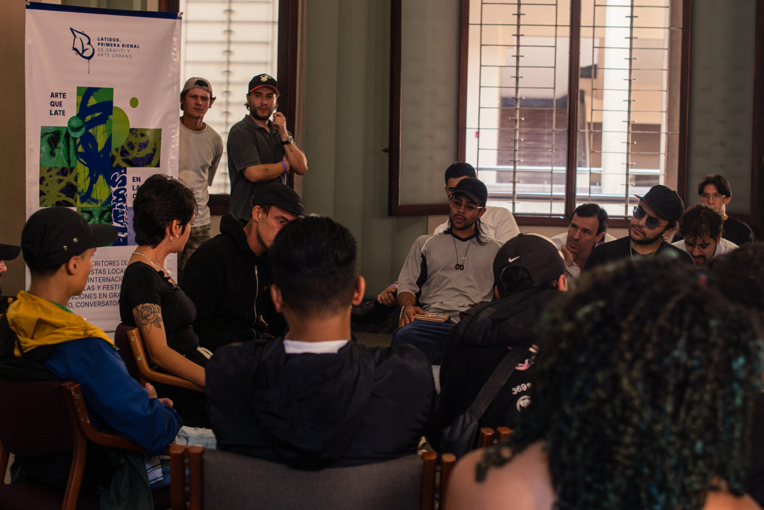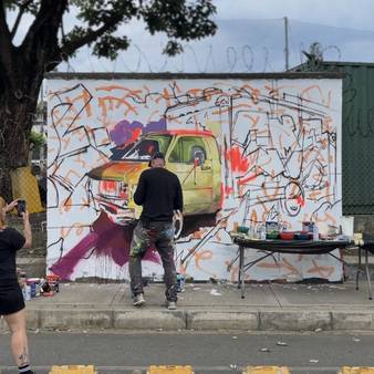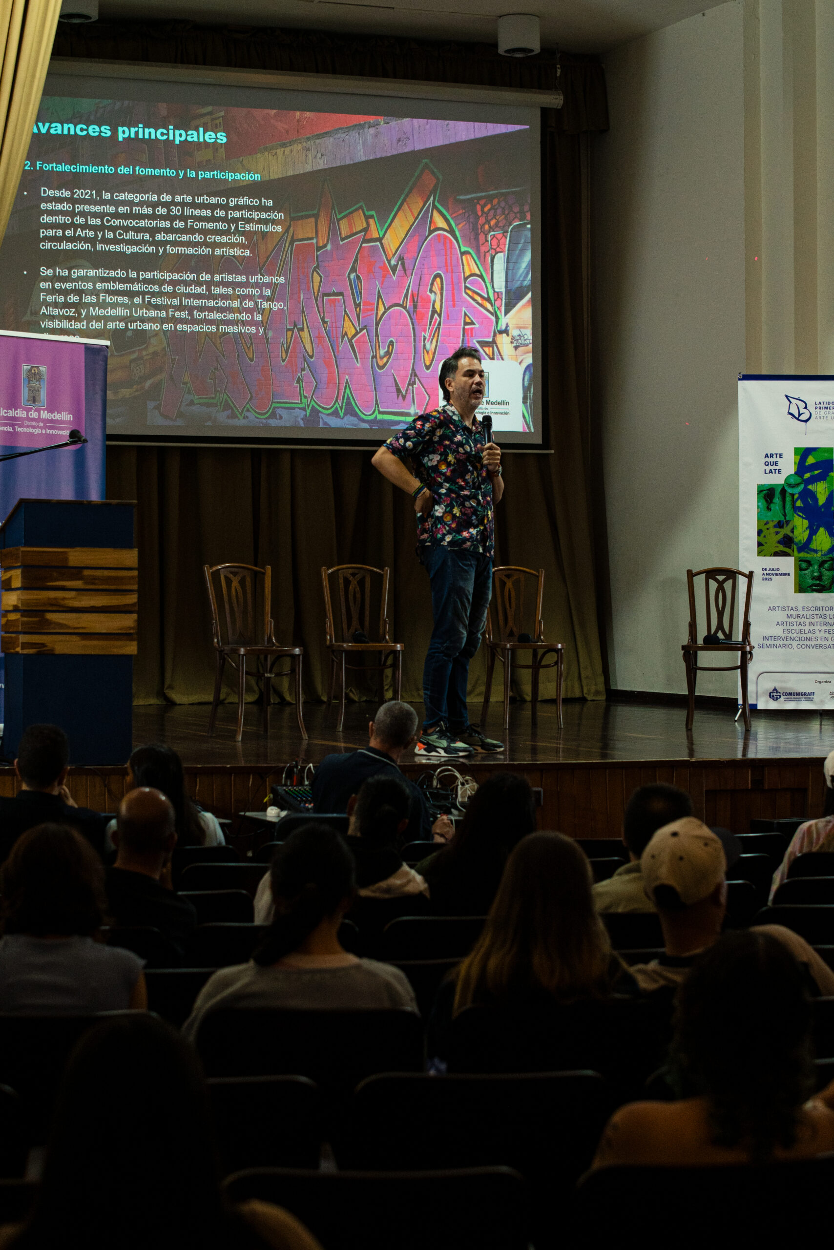 El artista visual y muralista peruano Entes compartió su visión del graffiti como resistencia, identidad y memoria, abordando las influencias urbanas, sociales y afroperuanas que atraviesan su obra. En este conversatorio habló sobre su proceso creativo y la manera en que su trabajo dialoga con comunidades marginadas y contextos latinoamericanos. El encuentro se realizó el 26 de septiembre de 2025 en la Fundación Universitaria Bellas Artes, sede Ayacucho, Pasaje Cervantes, salón 201.