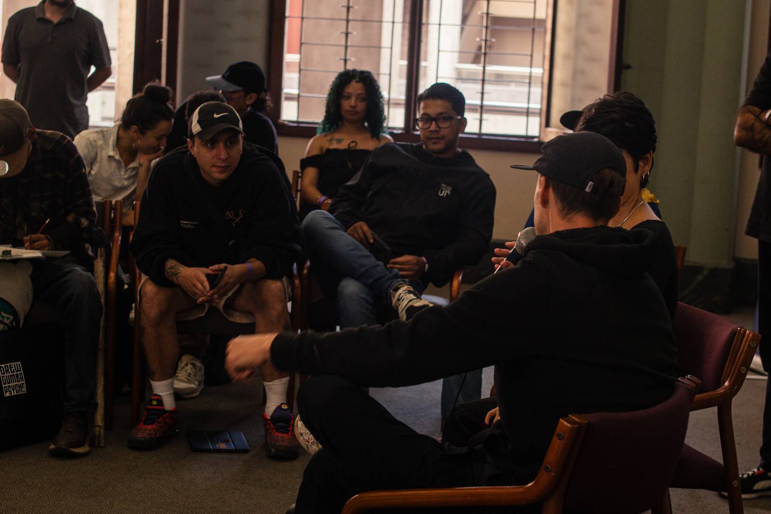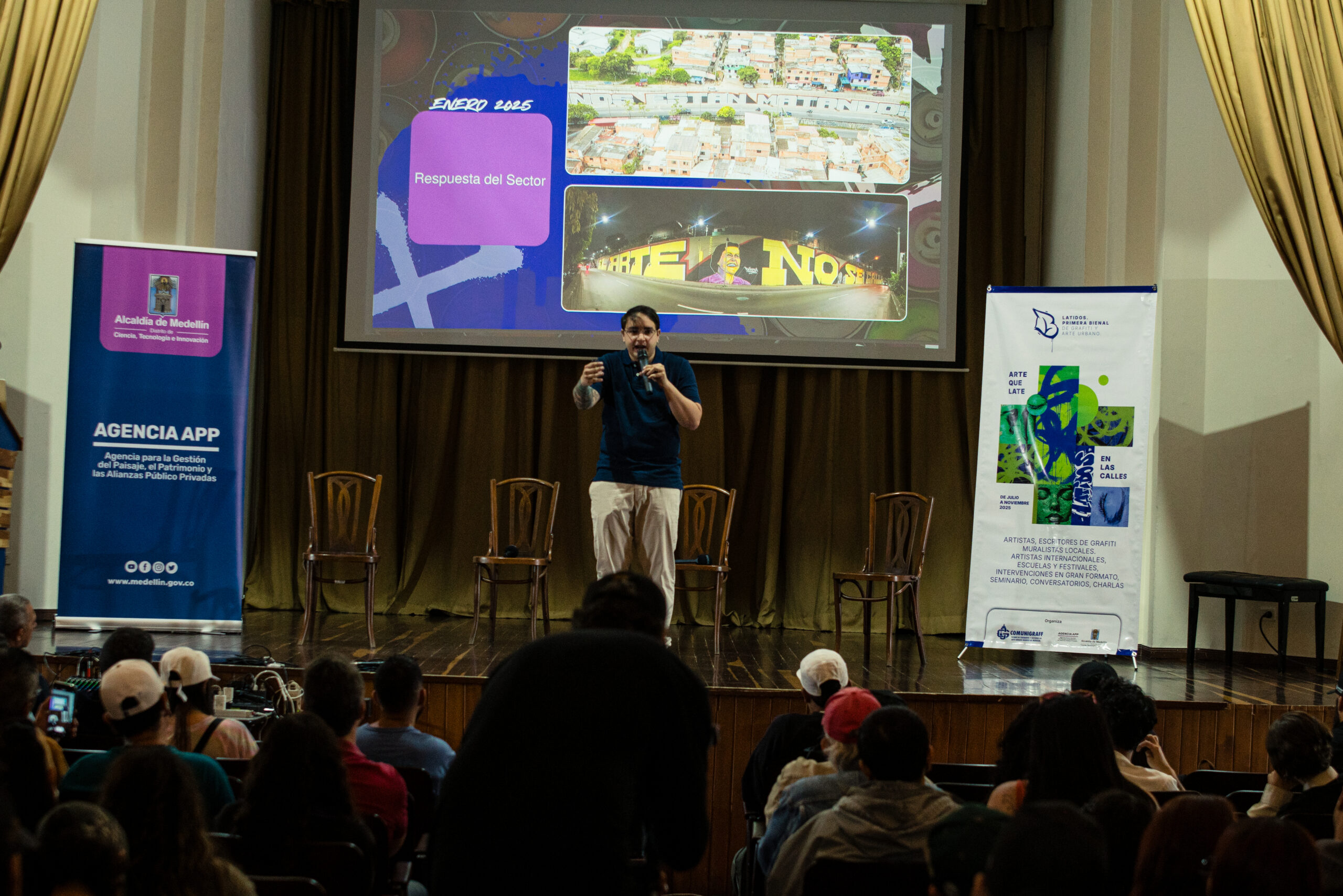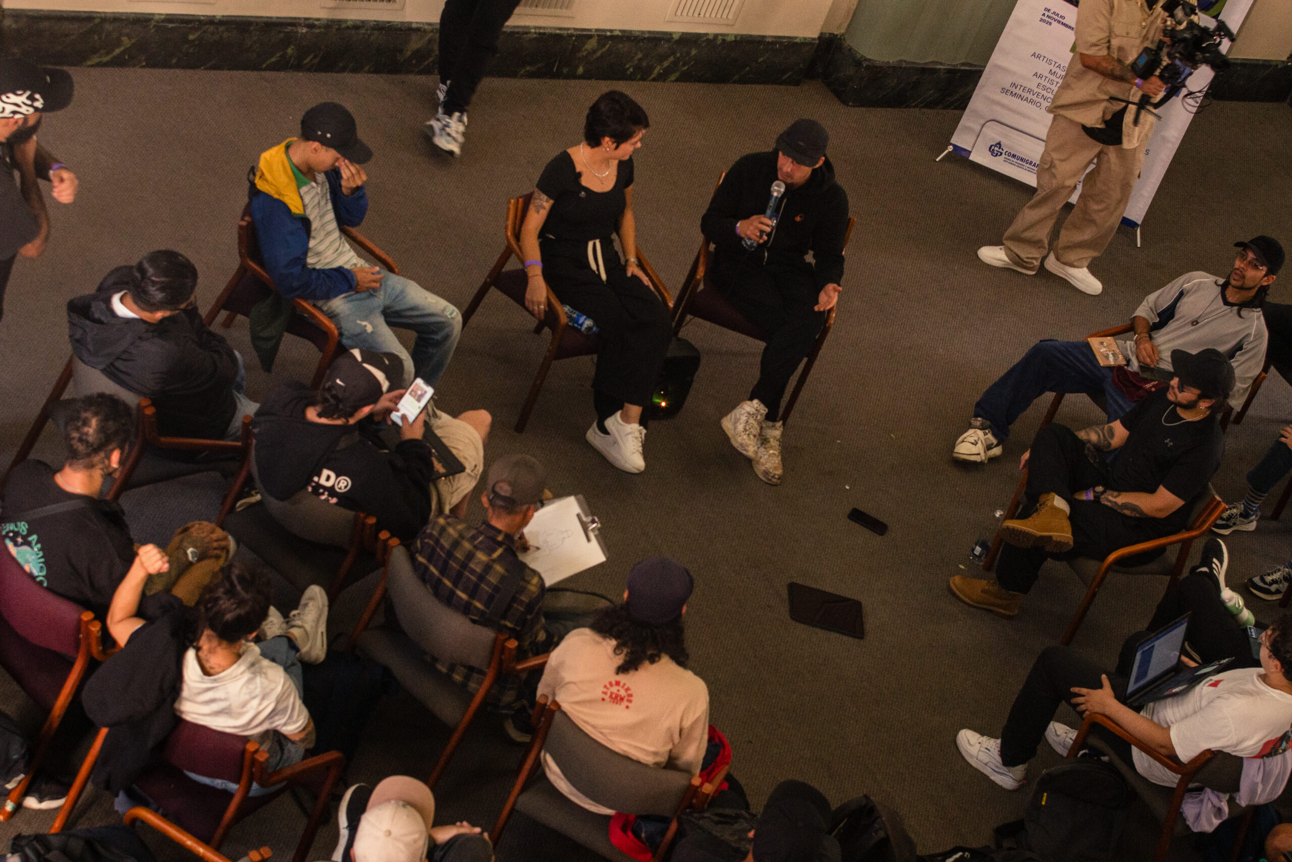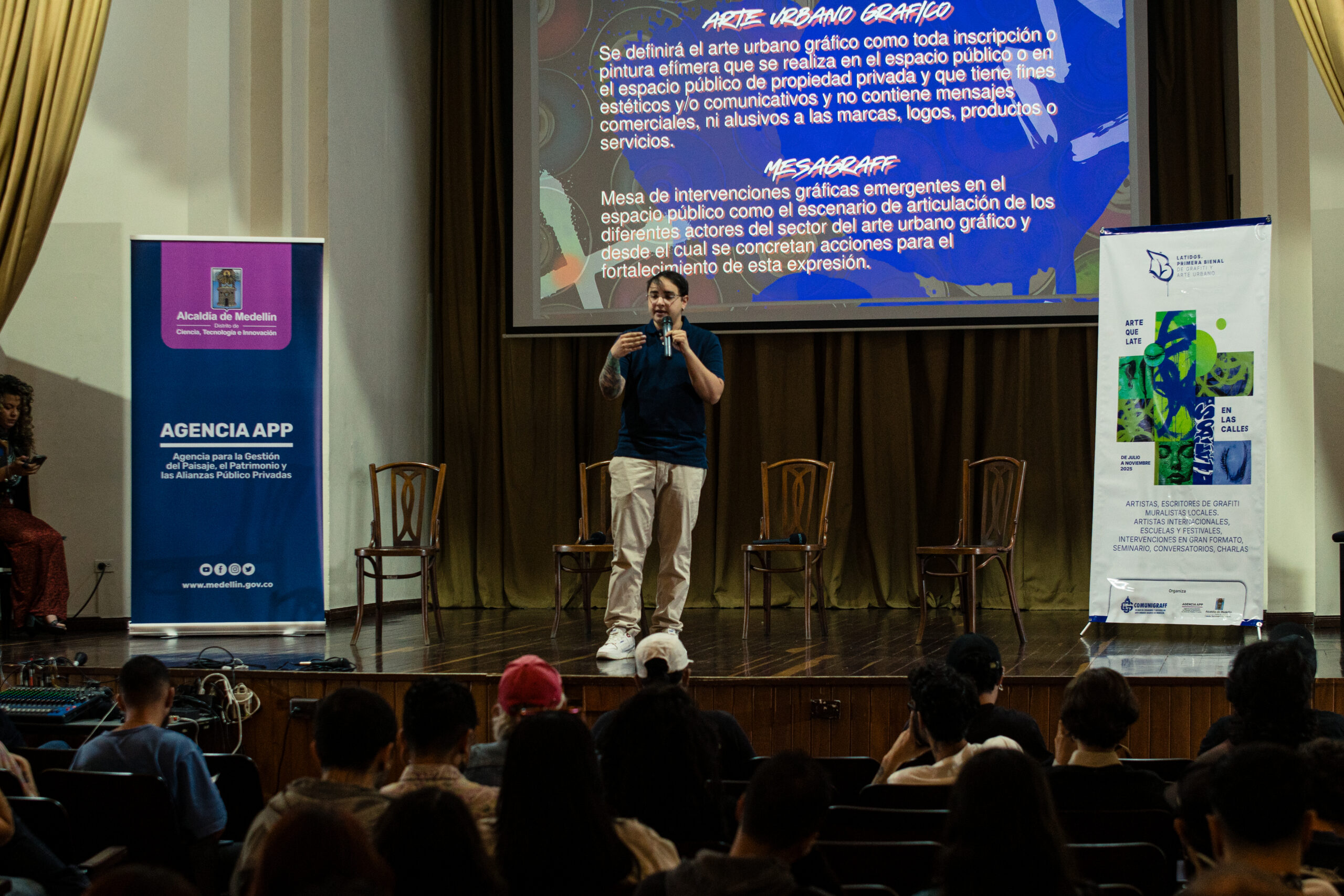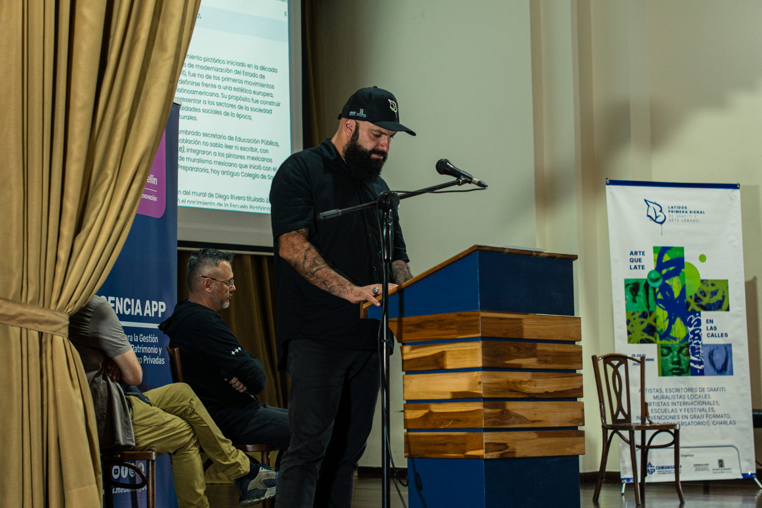 El artista visual y muralista peruano Entes compartió su visión del graffiti como resistencia, identidad y memoria, abordando las influencias urbanas, sociales y afroperuanas que atraviesan su obra. En este conversatorio habló sobre su proceso creativo y la manera en que su trabajo dialoga con comunidades marginadas y contextos latinoamericanos. El encuentro se realizó el 26 de septiembre de 2025 en la Fundación Universitaria Bellas Artes, sede Ayacucho, Pasaje Cervantes, salón 201.
