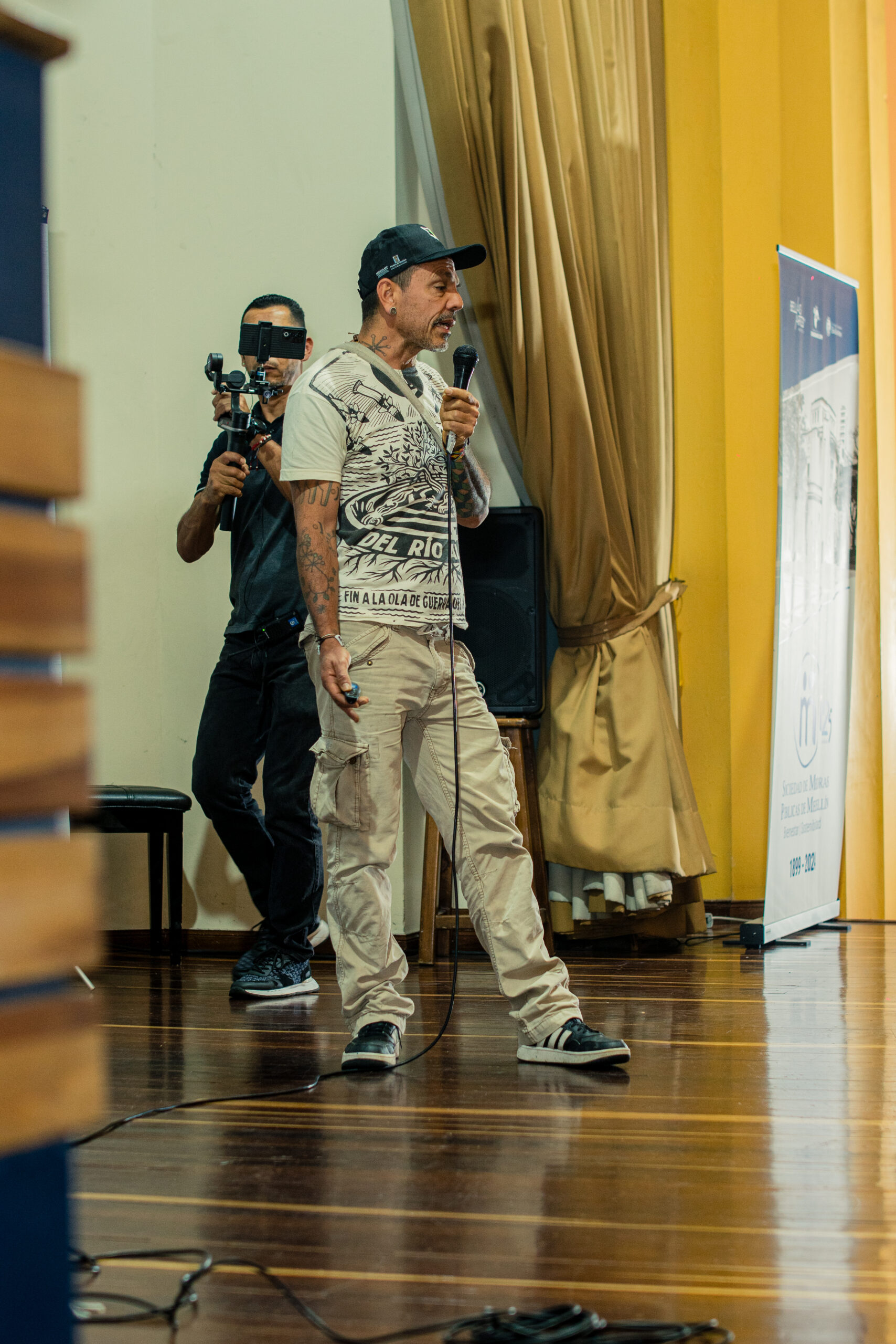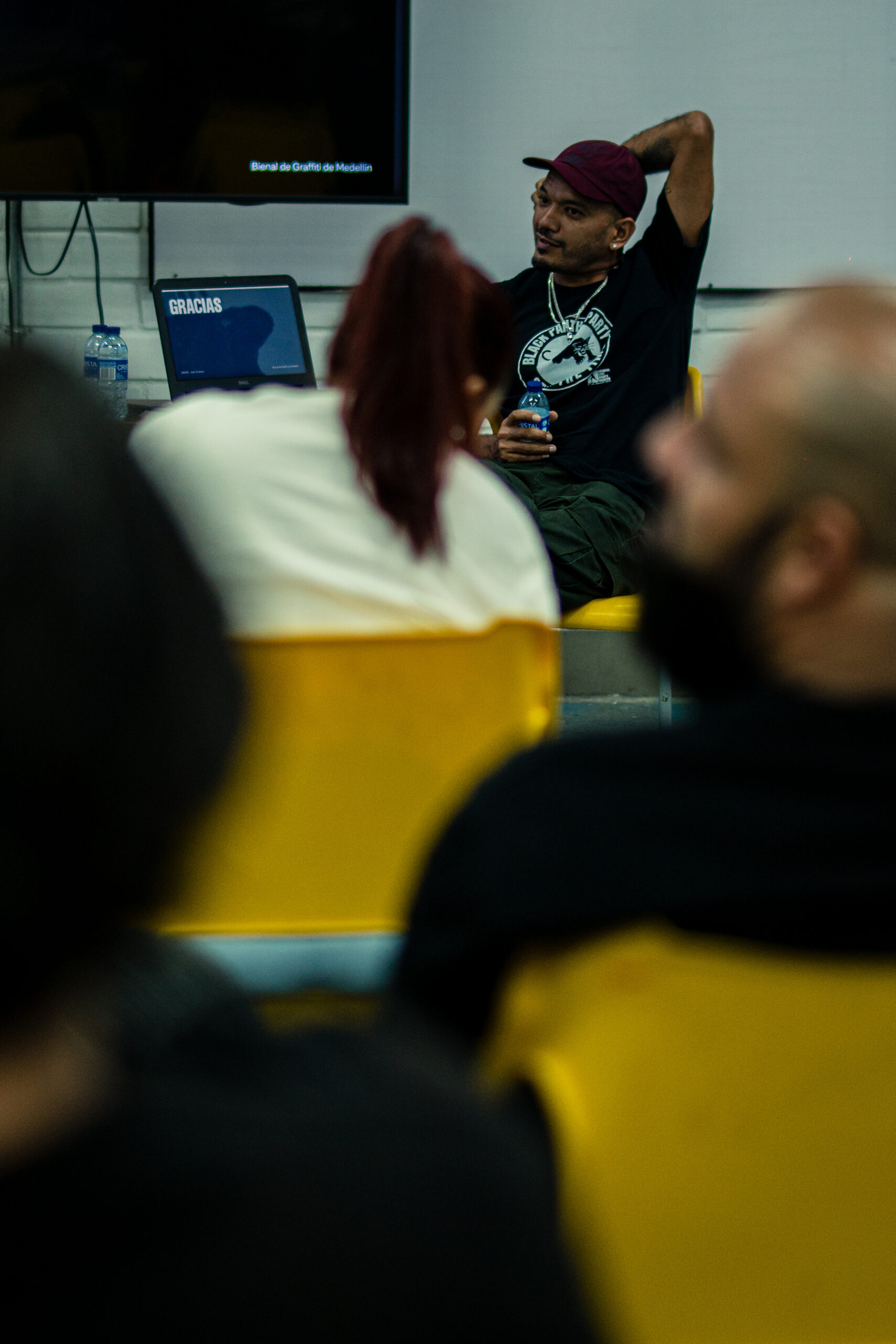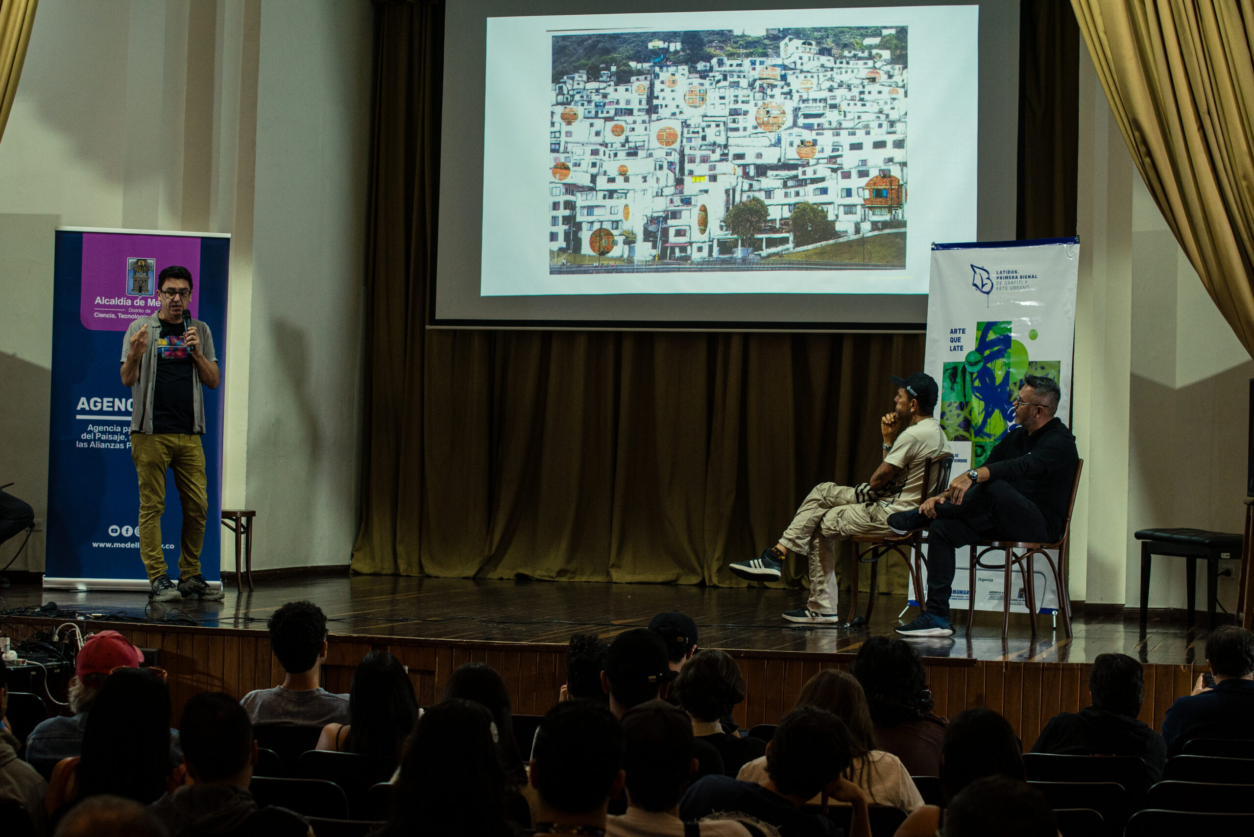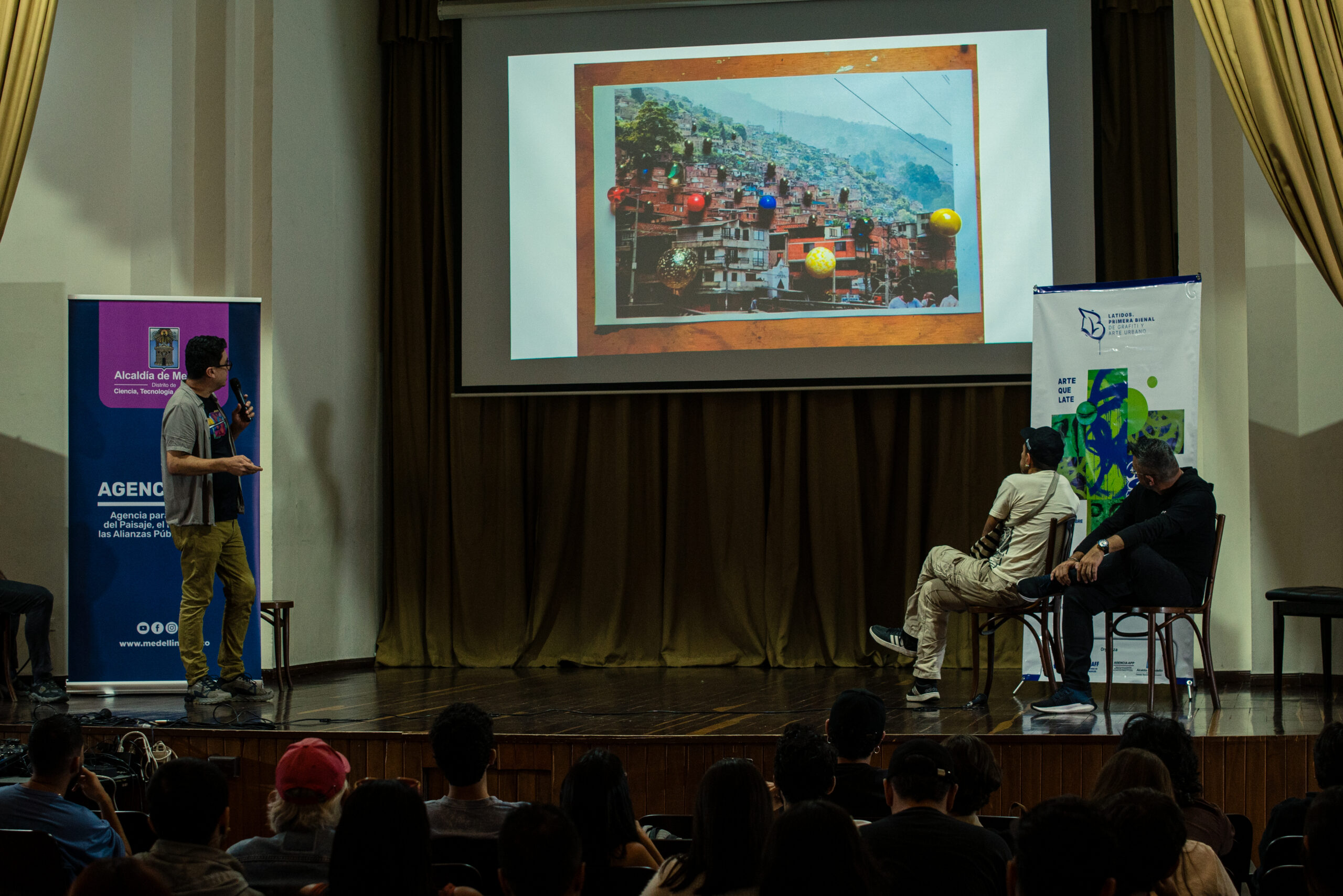 El artista visual y muralista peruano Entes compartió su visión del graffiti como resistencia, identidad y memoria, abordando las influencias urbanas, sociales y afroperuanas que atraviesan su obra. En este conversatorio habló sobre su proceso creativo y la manera en que su trabajo dialoga con comunidades marginadas y contextos latinoamericanos. El encuentro se realizó el 26 de septiembre de 2025 en la Fundación Universitaria Bellas Artes, sede Ayacucho, Pasaje Cervantes, salón 201.