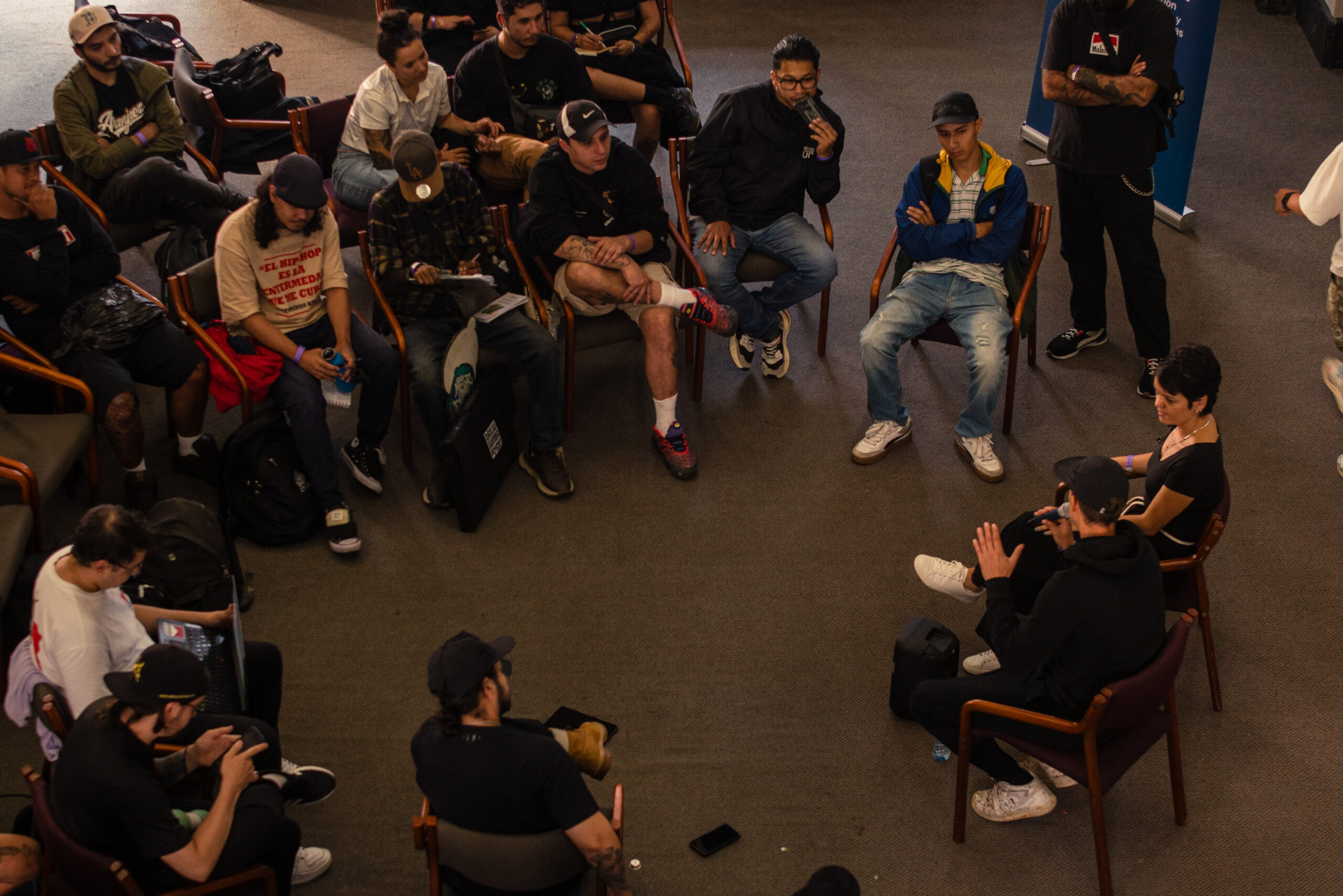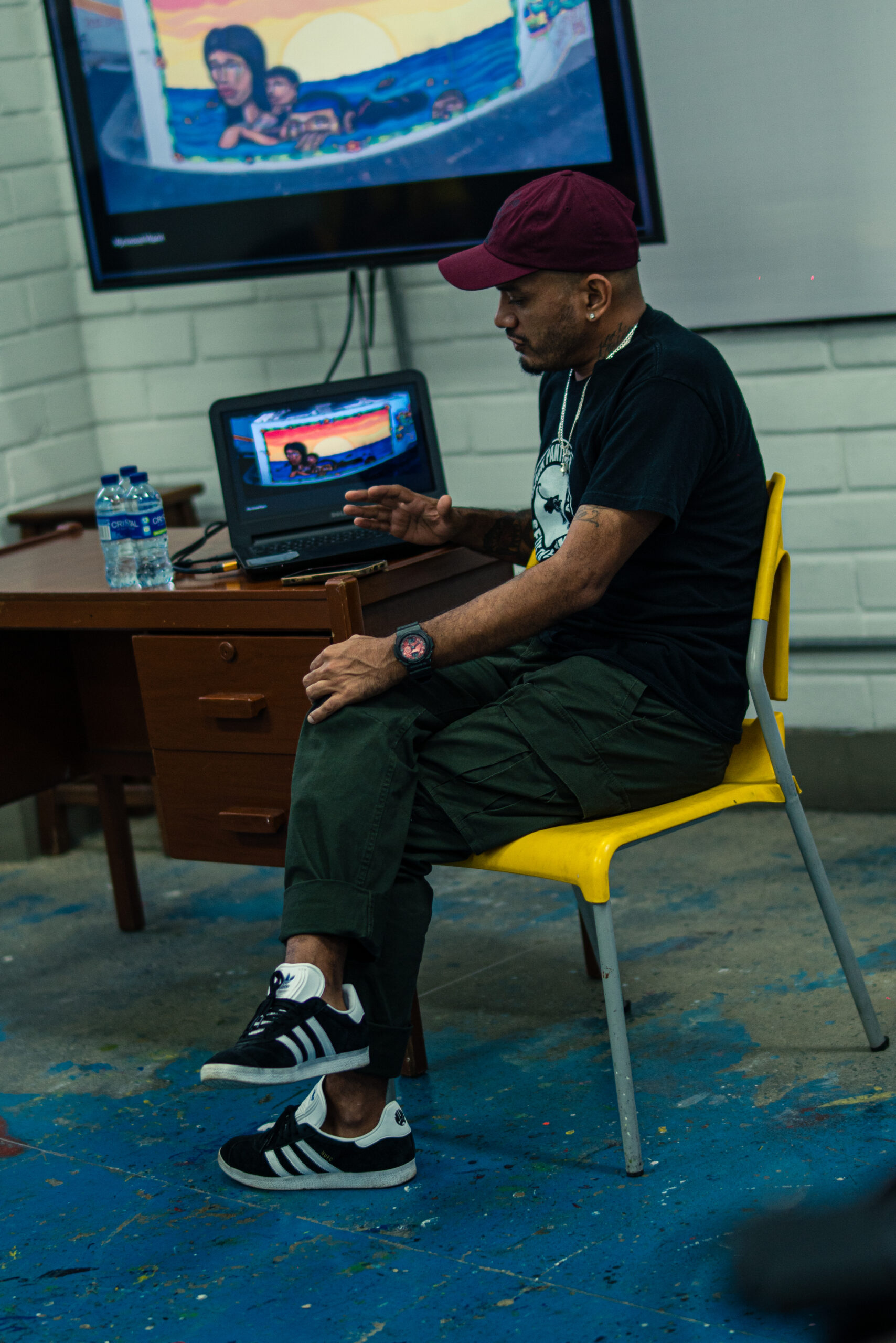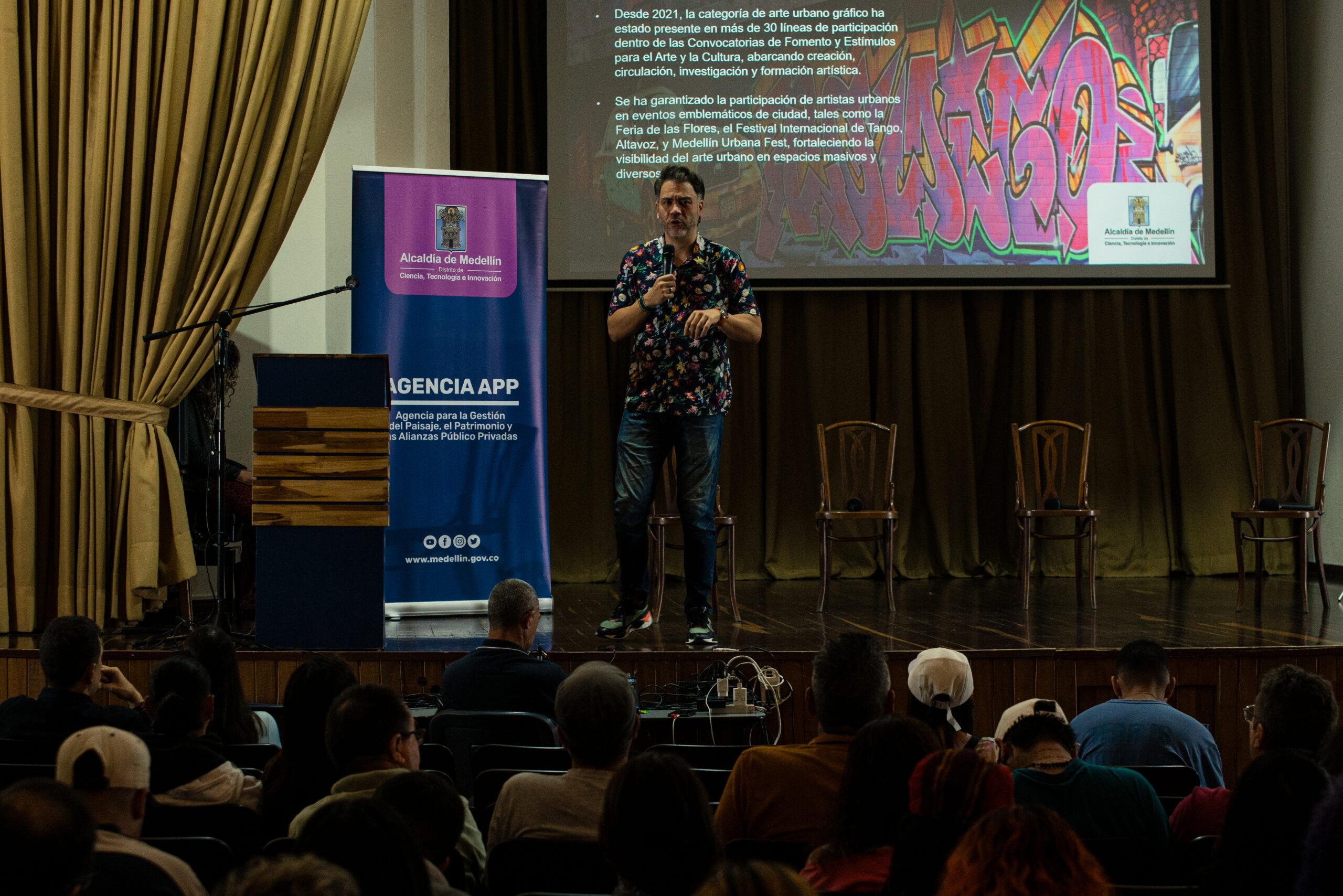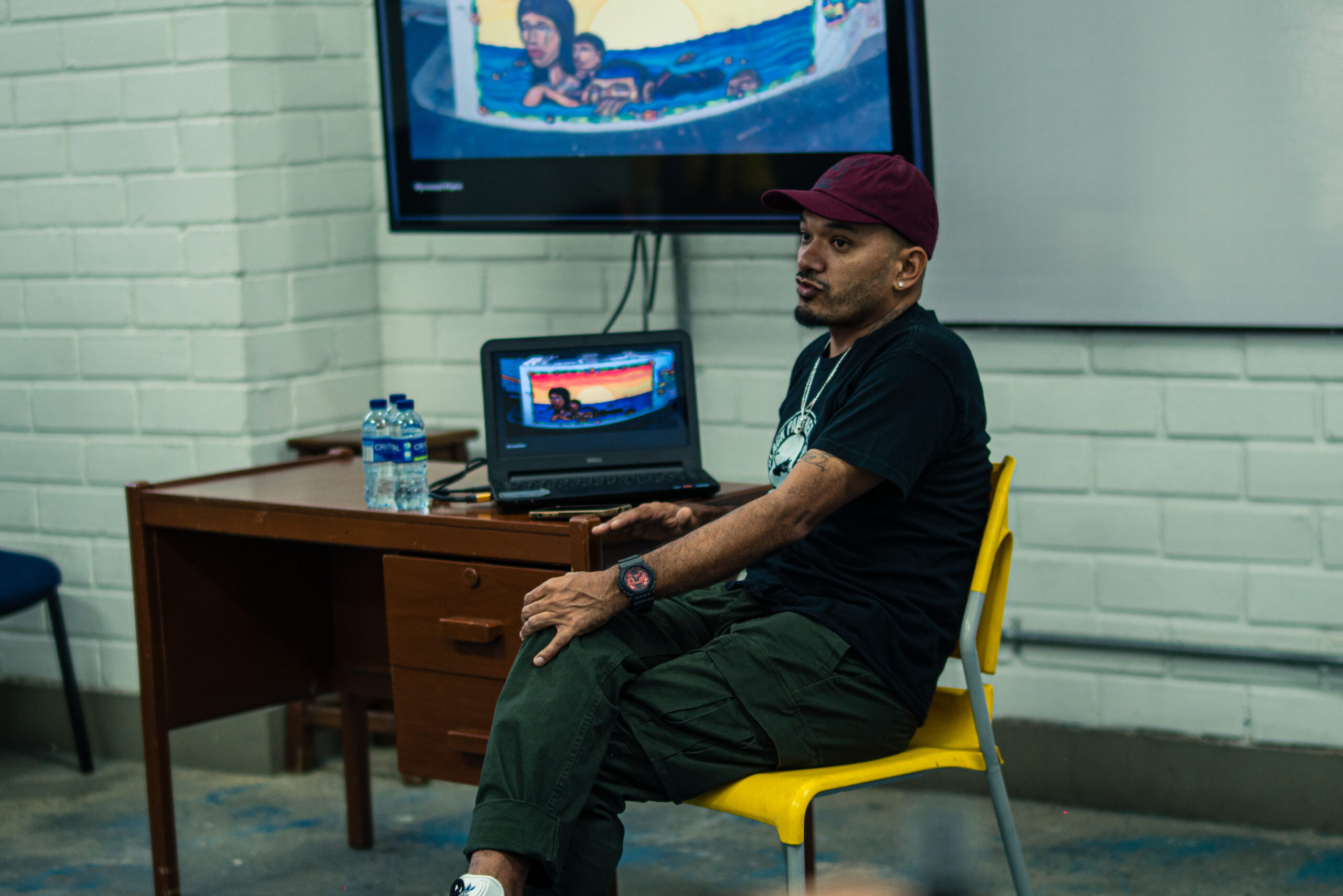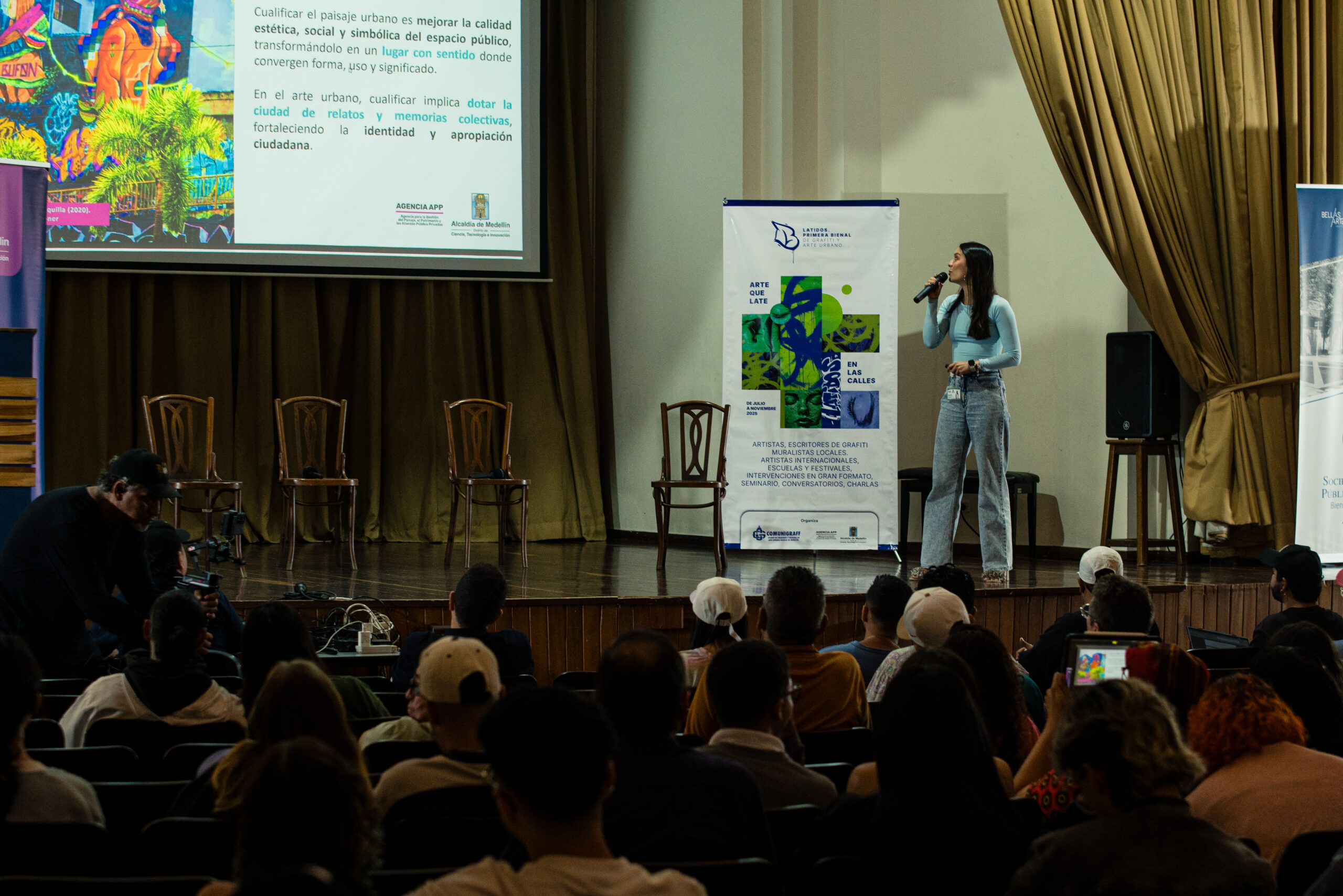 El artista visual y muralista peruano Entes compartió su visión del graffiti como resistencia, identidad y memoria, abordando las influencias urbanas, sociales y afroperuanas que atraviesan su obra. En este conversatorio habló sobre su proceso creativo y la manera en que su trabajo dialoga con comunidades marginadas y contextos latinoamericanos. El encuentro se realizó el 26 de septiembre de 2025 en la Fundación Universitaria Bellas Artes, sede Ayacucho, Pasaje Cervantes, salón 201.